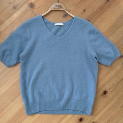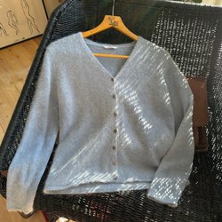 Ljusblå tröja i 100% ull och halvpolo. Knappt använd. Märkt storlek 44, jag uppskattar den som en medium/large.