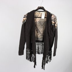 Svart ribbstickad tröja med hög krage och en liten öppning med en rosett på baksidan. Långärmad modell. Super skön i ekologosk bomull.