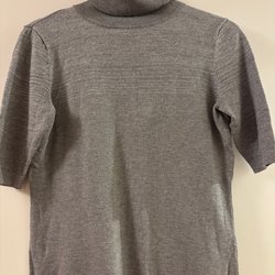 Gråmeleret ribstrikket beklædningsgenstand med en tætsiddende pasform. Designet har et subtilt, men alligevel stilfuldt udseende.