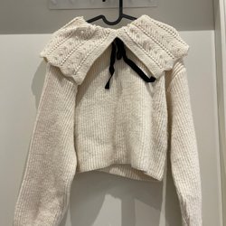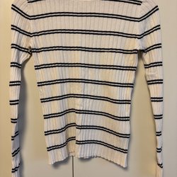 Vit, ribbstickad tröja med lång ärm och rund hals.passar bra XS också