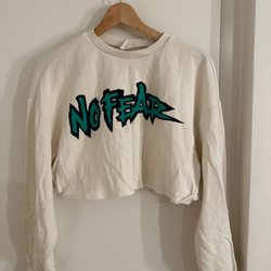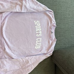 Vit sweatshirt med texten "SPORTS CLUB" i rosa. Endast använd vid 1 tillfälle