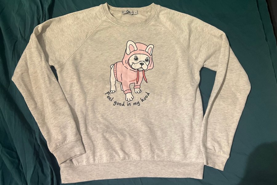 tröja stl small. Ganska Nopprig men går säkert att ta bort med maskin
