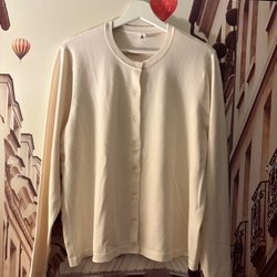 Tröja med lång ärm och v-ringning. Tröjan har en melerad grå nyans och en avslappnad passform. Storlek M.