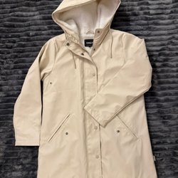 Tröja med hög krage och långa ärmar. Ribbstickade muddar i ärmslut och nederkant. Insidan är fodrad med ett mjukt och fluffigt material.