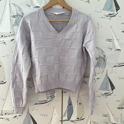 Tröja med hög krage och långa ärmar. Tröjan har en ribbad struktur.