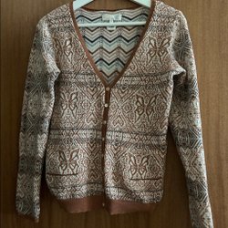 Långärmad tröja med ett mönster som skiftar i färg från ljus persika till mörkbrun.