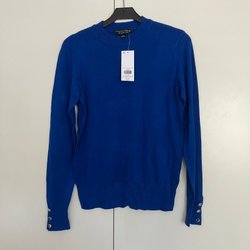 Färgen är blålila med blommönster i svart och rosa. Storlek XS men vid modell, se mått på bilder.