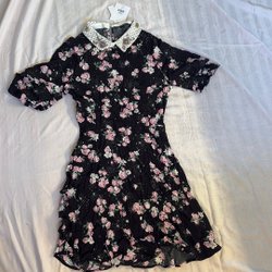 Färgglad skjorta med ett blommigt mönster i rosa, orange och blå toner. Skjortan har långa ärmar och en klassisk krage. Detaljer med mörkare kant längs knapparna.