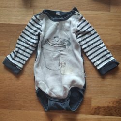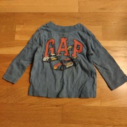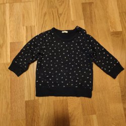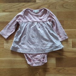 Blå och vit randig skjorta med långa ärmar. Ärmarna är uppvikta på bilderna men går att vika ner. Tyget är då randigt som skjortan i övrigt. Lite gulnad på insidan i nacken (syns ej från utsidan).