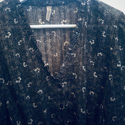 Svart blus med puffiga ärmar och knäppning framtill. Ärmen slutar strax innan handleden. Klassisk krage. Står xs men stor i storleken.