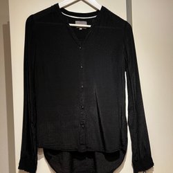 Blå och vit randig skjorta från Tommy Hilfiger. Skjortan har långa ärmar och knäppning framtill. Skjortan har en rundad detalj över bröstet och en klassisk krage m d feminin tutch. Fint beg skick. Deras stl 6, ca S, M. Armhåla till armhåla 46cm