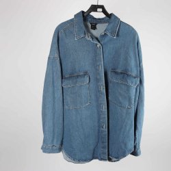 Gråsvart jeansskjorta. Endast använd 2-3 gånger och är i mycket gott skick. Storleken är XXS men skjortan är menad att vara oversized så den har passat mig som är M-L ändå och sitter som en vanlig, lite lös skjorta.