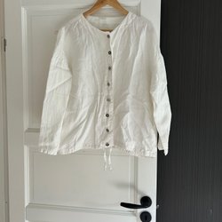 Vit skjorta med långa ballong ärmar och en bröstficka. Skjortan har en klassisk krage och knäpps framtill.