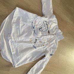 Vit skjorta med långa ärmar och knappar framtill. Skjortan har en bröstficka.