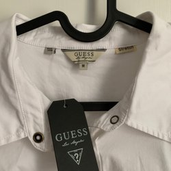Vit skjorta med broderier framtill och krage. Kortärmad modell med knäppning. Väldigt luftig och charmig. Passar S/M