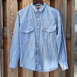 Ljusblå jeansskjorta med långa ärmar och knäppning framtill. Skjortan har två bröstfickor med lock och knappar. Kragen är klassisk och passformen är avslappnad.se fläckar