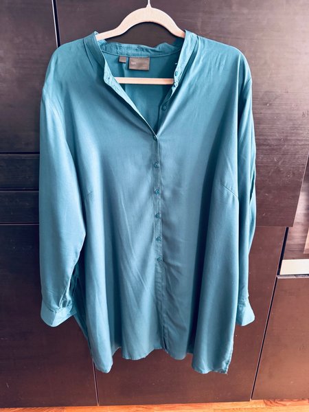 Långärmad skjorta med krage och knappar framtill. Skjortan har en rak passform och är lämplig för olika tillfällen.