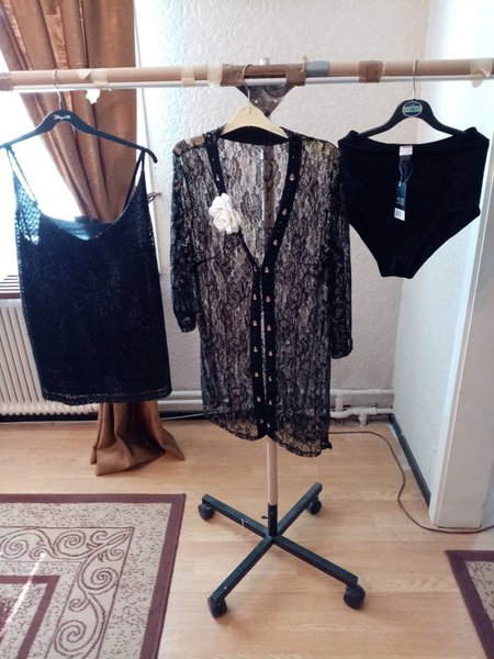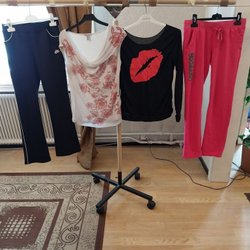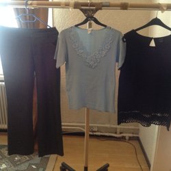 1st linne justera i axlarna och en blus med stenar fram båda för fest och 1st briefs M) på köpet ny alla i stl 40/42 alla har kostat 700kr