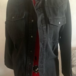 Ljusblå jeansskjorta med långa ärmar och knappar framtill. Den har två bröstfickor med knappar. Skjortan är i en avslappnad stil.