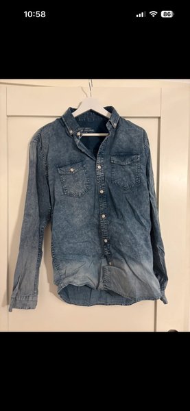 Skjorta med långa ärmar och knäppning framtill. Skjortan har två bröstfickor med knappar och en krage med knappar. Den har en tvättad denimlook.