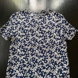 Ett par mörkblå byxor från Gant med ett blommigt mönster i gult och vitt. Byxorna har fickor både fram och bak.