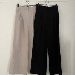 Byxor från H&M med hög midja och raka ben. Resår i midjan och knäppning framtill. Går till anklarna på mig som är 170 cm. Fint skick, inte använda så mycket.