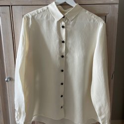 Eleganta svarta byxor från Filippa K i storlek Large. Byxorna har en klassisk design med pressveck och en bakficka med knapp.