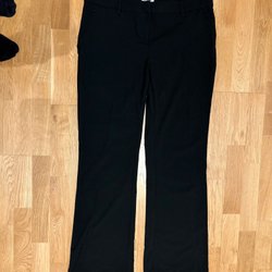 Två par svarta dressade byxor med dragsko i midjan. Ena paret har en liten reva vid på snöret men funktionen påverkas inte. Fejk fickor bak och 2 fickor fram.