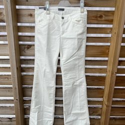 Eleganta vita byxor från J.Lindeberg med flare. Byxorna har fickor fram och passpoalfickor bak. De har en klassisk design som passar både till vardags och fest. Silkeskant längs med byxorna. Butikspris 2200 kr. Helt nya med lappar.
