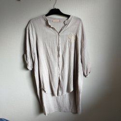 Svart byxa med dekorativ dragkedja och knappar fram. Byxorna har fickor fram och bak. Grenen på byxan är lite noppiga så därav priset. Midjemåttet är ca:45 cm och längden är ca:85cm.