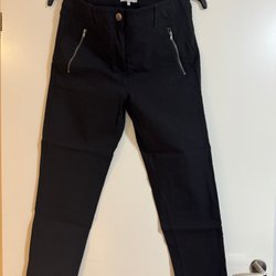 Sorte bukser med en slank pasform og en beskåret længde. Bukserne har en klassisk lukning med knap og lynlås, samt praktiske lommer foran og bagpå. De er velegnede til både hverdag og mere formelle lejligheder.