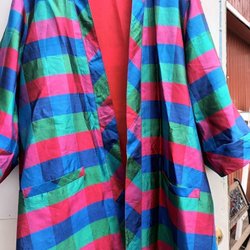 Sköna mönstrade blå byxor med resår och snöre i midjan, har fickor i sidorna. Märkta M men skulle säga S. Hög midja. Tror det är viskos.