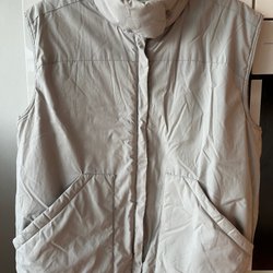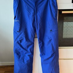 Ett par vadderade vita byxor med detaljer som knappar och dragkedjor vid bensluten. Byxorna har en klassisk design och en bekväm passform.