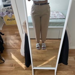 Ursnygg, fodrad modell. Ser verkligen ut som äkta skinnbyxor. Ok längd även för mig som är 174 cm. Drar kanske lite mot en tight strl 40.