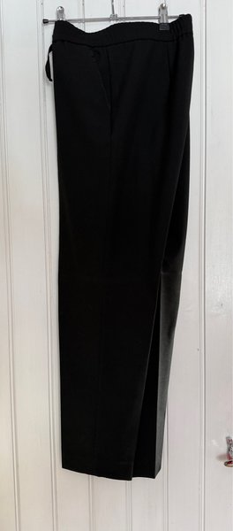 Philippa K. Svarta byxor med resår i midjan och snedställda fickor som är bandkantade. Byxorna har en rak passform med sydda pressveck.. Använda 4 timmar. L 100