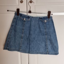 Snygga byxor i mörkblå färg med fickor och veck. Byxorna har en knappstängning och dragkedja framtill. Tidigt 90-tal, i bra skick. Se bilder för mått- märkta strl 40.
