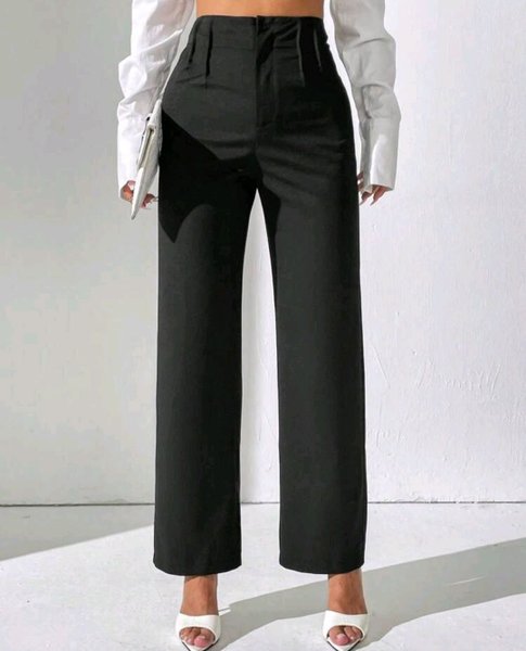 Eleganta, svarta byxor med hög midja och vida ben. Perfekta för en sofistikerad och stilren look.