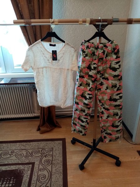 1par byxor med resår i midjan flickor fram och bak plus en st topp fin material ny stl 38.