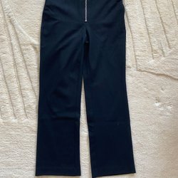 Svarta byxor med dragkedjedetaljer framtill. Byxorna har en stilren design och passar för olika tillfällen. De är enkla att matcha med andra plagg för att skapa både vardags- och festoutfits.