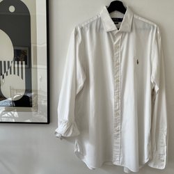 Fint ser från HM i svalt material, oanvänt, bra passform. Skjorta (ny med tag men skrynklig) storlek large, byxa med fickor i storlek 38.