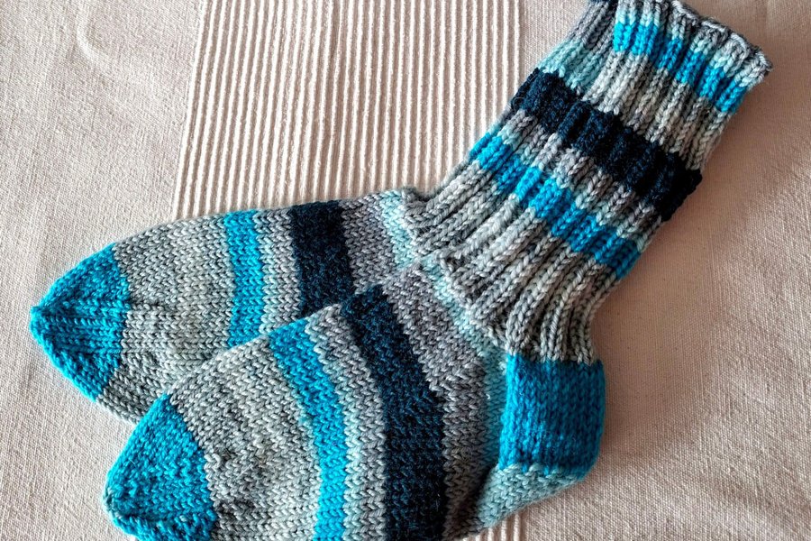 Handstickade raggsockar i ullblandning,