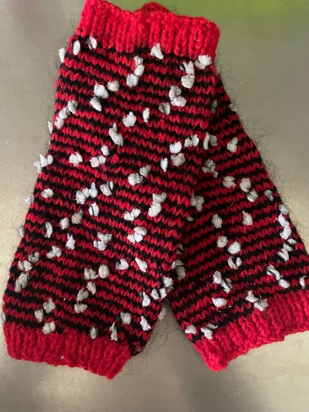 Hemstickade ull benvärmare