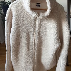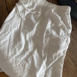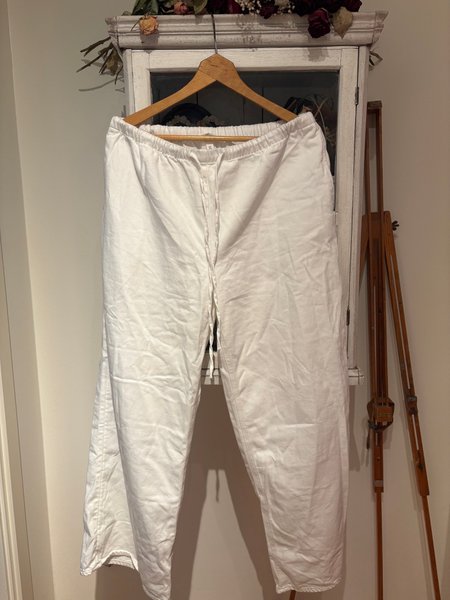 Ett par vita byxor med resår och dragsko i midjan. Byxorna har en avslappnad passform.