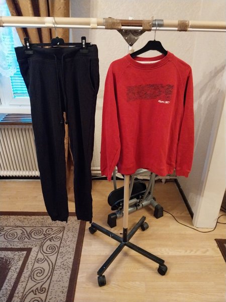 1 par svarta byxor plus en röd tröja fina ,lite anv. Stl.36.