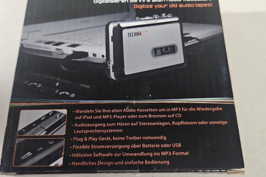 Digitalisera dina gamla ljudkassetter med TECHNAXX DigiTape DT-01. Konvertera dina gamla ljudkassetter till MP3 för uppspelning på iPod och MP3-spelare eller för att bränna på CD. Ljudutgång för att lyssna på stereoanläggningar, hörlurar eller andra högtalarsystem. Plug & Play-enhet, inga drivrutiner nödvändiga. Flexibel strömförsörjning via batteri eller USB. Inkluderar programvara för konvertering till MP3-format. Praktisk design och enkel användning.