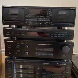 Stereoanläggning från Sony. Består av CD-spelare, förstärkare, radio och dubbel kassettbandspelare. Högtalare ingår.