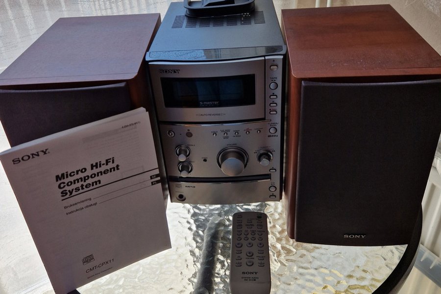 Sony Micro Hi-Fi Component System CMT-CPX11 med fjärrkontroll och manual.