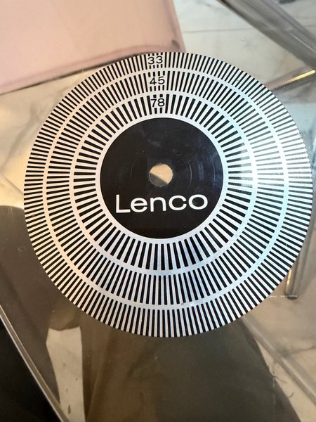 Stroboskopskiva från Lenco för att justera hastigheten på din skivspelare. Indikerar 33, 45 och 78 varv per minut.