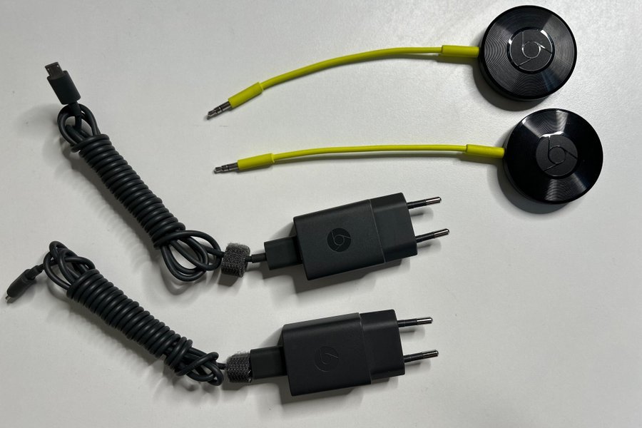 Två stycken sparsamt använda Google Chromecast Audio i fint skick.