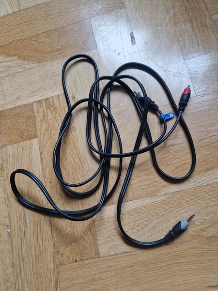 Säljer en ljudkabel med 3.5mm kontakt till RCA kontakter.